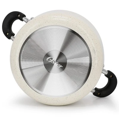 Cook up your favorite soups, sauces, pastas, one pot meals and more in this large 6 quart Clairborne dutch oven by Oster. Featuring a nonstick coating over a durable aluminum construction, this dutch oven heats evenly providing you with consistent results every time. Nonstick coating allows for low fat cooking while the tempered glass lid vents out steam and makes monitoring your cooking progress a breeze. Textured outer design with matte finish is simple and modern and will go beautifully with your every day kitchen cookware.