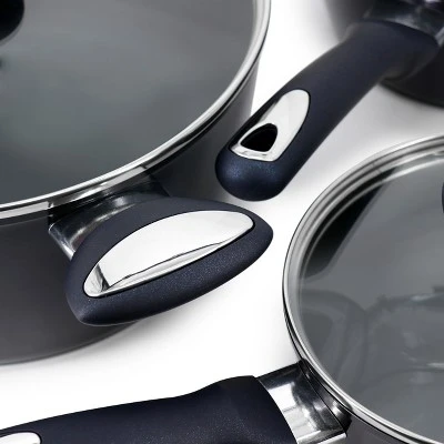 The Oster Hawke 14 piece cookware set comes with all of your every day essential cookware pieces. this set includes a dutch oven, two fry pans, two saucepans with lids, two cooking utensils, and four felt pads. Constructed with a forged aluminum body and a PFOA-free ceramic nonstick coating that provides everyday durability and even heat distribution, ensuring consistent results for your favorite meals. Each piece of cookware is safe to use on gas, halogen, induction, vitroceramic, and electric stovetops for versatility and ease of use. Nylon utensils are nonstick-safe and the included felt pads protect your pots and pans from scratches. Look no further and complete your daily cooking needs with this 14 piece set!