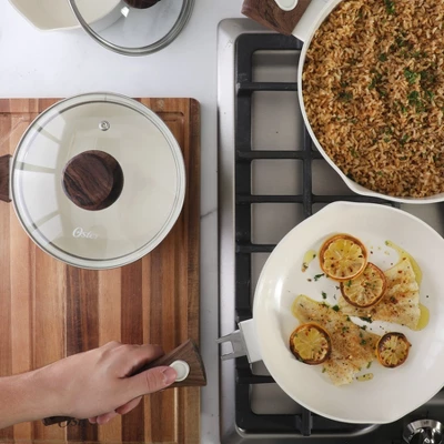 “The Oster™ Smarthandle Advance Collection redefines everyday cooking with innovation and efficiency.Designed for convenience, this space-saving cookware features detachable, shareable handles that make storage easy and pan-swapping seamless. Each handle locks in with a single click, offering a secure, confident grip for stovetop-to-table transitions. Every pot and pan in the collection boasts a nonstick interior for effortless release—whether you’re frying eggs, flipping pancakes, searing steaks, or crisping hashbrowns. Forged aluminum construction ensures fast, even heat distribution, while built-in pour spouts offer controlled, mess-free pouring. Compatible with all stovetops, including induction, this versatile collection blends smart design with everyday practicality.Get Creative in the Kitchen with Oster™. A trusted homewares brand for almost 100 years, Oster™ has a wide selection of durable and versatile products for today’s home cooking and entertaining environment. Simple quality cookware, cutlery, food prep gadgets, and more provide dependability and functionality to meet everyday kitchen needs. From family mealtimes to weekend celebrations, Oster™ is ready to help and serve generations of home cooks in the US, Latin America, and beyond.”The Oster™ Smarthandle Advance Collection redefines everyday cooking with innovation and efficiency.Designed for convenience, this space-saving cookware features detachable, shareable handles that make storage easy and pan-swapping seamless. Each handle locks in with a single click, offering a secure, confident grip for stovetop-to-table transitions. Every pot and pan in the collection boasts a nonstick interior for effortless release—whether you’re frying eggs, flipping pancakes, searing steaks, or crisping hashbrowns. Forged aluminum construction ensures fast, even heat distribution, while built-in pour spouts offer controlled, mess-free pouring. Compatible with all stovetops, including induction, this versatile collection blends smart design with everyday practicality.