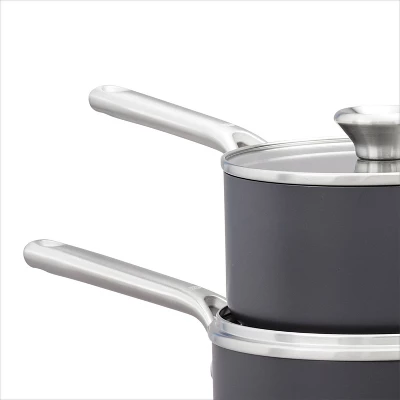- Cookware set includes: 1.7 Qt./1.6 L saucepan with lid and 2.3 Qt./2.2 L saucepan with lid