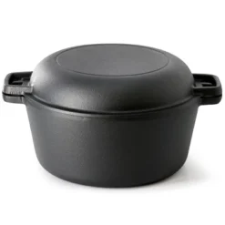 MegaChef Pre-Seasoned 9 Piece Cast Iron Skillet Set With Lids And Red Silicone Holder