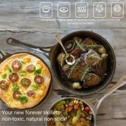 Solidteknics AUS-ION 10-inch Lightweight Iron Skillet – Pre-Seasoned, Ideal For Frying, Grilling, Baking – All-Purpose Cookware