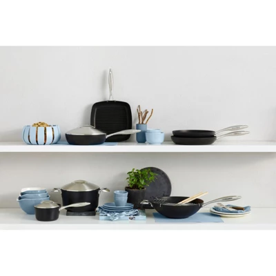 - Ergonomic stainless steel handle, oven safe to 500°F