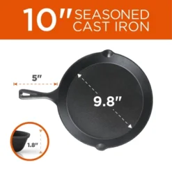 COMMERCIAL CHEF Pre-Seasoned Cast Iron 3-Piece Skillet Set, 6Inch 8Inch 10 Inch, Black