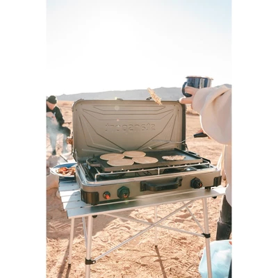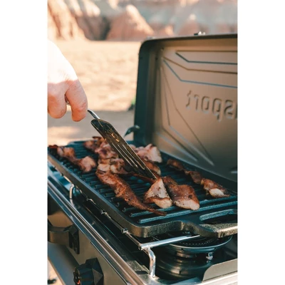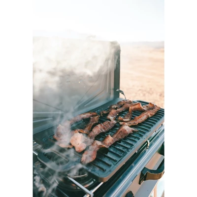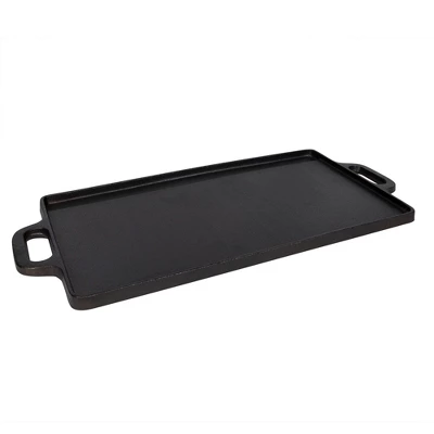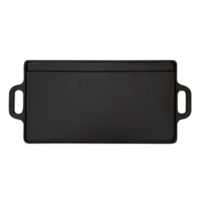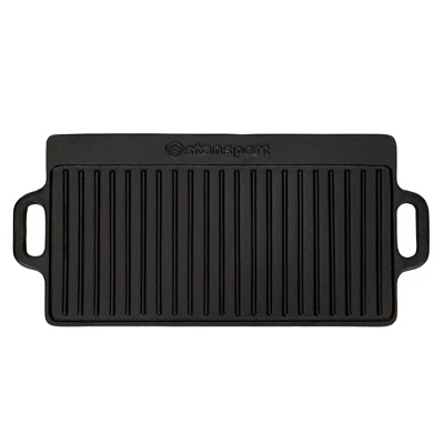 Breakfast is served! This Stansport® Pre-Seasoned Cast Iron Griddle cooks up potatoes, bacon and sausage with aplomb. The 9” x 20” cast-iron surface retains heat and builds a natural non-stick coating with use. Use the smooth surface for eggs, pancakes or other delicate breakfast foods, and the ridged side for steaks, chops and fish.