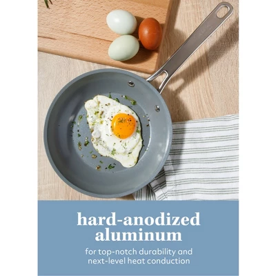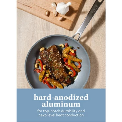 More than the delicious flavors in any dish, it’s the communal experience of dining that makes a recipe truly unforgettable. As family and friends gather around the table, sharing memories over a spread of sides, mains, and desserts becomes the highlight of any get-together. The Cool Commune Ceramic Nonstick Hard-Anodized Aluminum Cookware Collection is inspired by the joy and togetherness of dining and entertaining. This suite of forged, hard-anodized aluminum pots and pans emphasizes durability for everyday cooking. Hard-anodized aluminum is tougher than traditional aluminum, making it resilient enough to withstand the demands of daily use. Whether you’re enjoying a leisurely cooking experience or preparing a meal in a fast-paced setting, this cookware set ensures even cooking every time.The ceramic nonstick interior proves that healthier cooking doesn’t have to be boring. Made without PFOA, PTFE, lead, or cadmium, the nonstick surface features an easy-release design that prevents food from sticking—without the need for added oil or fat. Stainless steel handles feature a Y-shaped design to help dissipate heat and stay cool to the touch. Each pot comes with a tempered glass lid to retain heat and moisture while allowing visibility to monitor food as it cooks. Induction-compatible and oven-safe up to 500°F (350°F with glass lids). Hand wash recommended.Sur La Table Kitchen Essentials is your cooking toolkit for preparing crowd-pleasing homemade dishes and desserts. Invite discovery and delight to in-home dining with practical, modern cookware, dinnerware, and must-have utensils for carrying out every kitchen task. So, roll up your sleeves, cook delicious food and make people happy.More than the delicious flavors in any dish, it’s the communal experience of dining that makes a recipe truly unforgettable. As family and friends gather around the table, sharing memories over a spread of sides, mains, and desserts becomes the highlight of any get-together. The Cool Commune Ceramic Nonstick Hard-Anodized Aluminum Cookware Collection is inspired by the joy and togetherness of dining and entertaining. This suite of forged, hard-anodized aluminum pots and pans emphasizes durability for everyday cooking. Hard-anodized aluminum is tougher than traditional aluminum, making it resilient enough to withstand the demands of daily use. Whether you’re enjoying a leisurely cooking experience or preparing a meal in a fast-paced setting, this cookware set ensures even cooking every time.