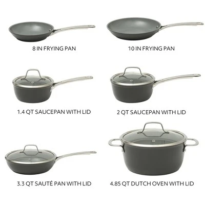- HARD-ANODIZED ALUMINUM COOKWARE: tougher than traditional aluminum cookware, these pots and pans provide top-notch durability to get through the busiest times in the kitchen. whether you are cooking up a storm or casually making a one-pot dish, this cookware set delivers next-level heat distribution to ensure that any meal comes out evenly cooked and worthy to eat seconds on.