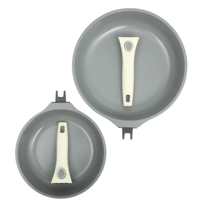 - * a complete cookware set includes: one 8.7-inch frying pan, one 11-inch frying pan and two long detachable handles