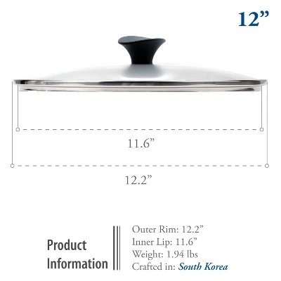 The TECHEF Tempered Glass Lid is designed to enhance your cooking experience with its clear, see-through design, allowing you to easily monitor your dishes without lifting the lid and losing valuable moisture or nutrients. Perfectly compatible with all TECHEF nonstick cookware, this lid features a convenient steam-release vent that helps prevent overflow and maintains optimal cooking conditions.Built to withstand oven temperatures up to 350°F, this lid adds versatility to your cooking, transitioning seamlessly from stovetop to oven. It’s also dishwasher-safe, making cleanup effortless. Made in Korea with high-quality craftsmanship, the TECHEF Tempered Glass Lid is a practical and durable addition to any kitchen, providing both performance and convenience.