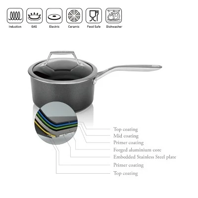 The Onyx – 2qt Nonstick Saucepan offers superior cooking performance and versatility. Made from forged heavy-gauge aluminum, it ensures even heat distribution and prevents hot spots, providing consistent results every time. The highly durable, PFOA-free 3-layer nonstick coating is metal utensil safe, ensuring effortless food release and easy cleanup. Designed with an elegant forged rim for smooth pouring, this saucepan also features an induction-ready base that works on all stovetops and prevents warping. The double-riveted stainless steel handle stays cool during cooking for added comfort and strength. Oven-safe up to 450°F and dishwasher safe, the Onyx saucepan is ideal for a variety of tasks, from simmering sauces to boiling and reheating, making it a valuable addition to any kitchen.