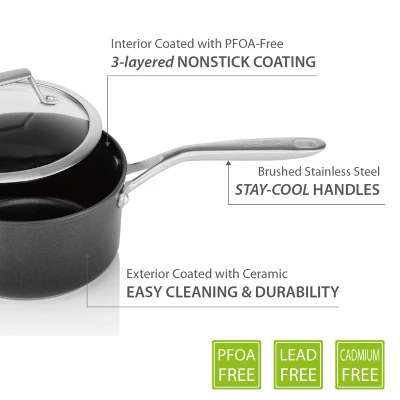 - High-Performance Nonstick – the highly durable, PFOA-free, 3-layer nonstick coating is metal utensil safe and ensures food releases easily and completely