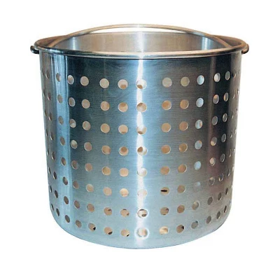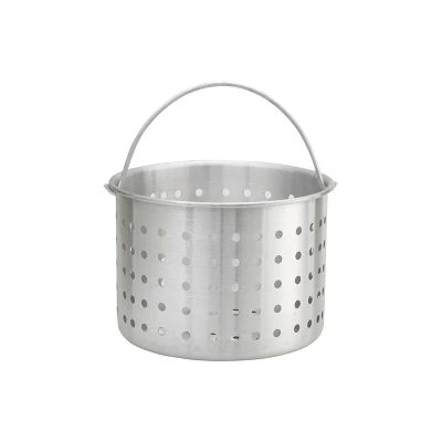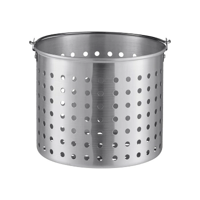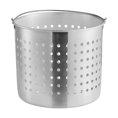 - Aluminum pot-shaped basket with large holes and a bail (handle); made to fit in Winco aluminum stock pot